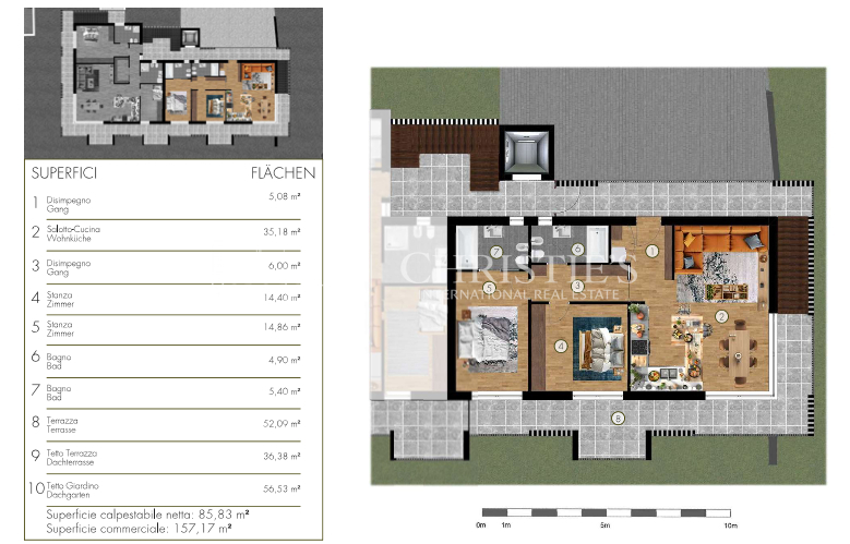 Beschreibung der Immobilie Modernes Penthouse mit Dachterrasse und Gartenfläche in Obermais
