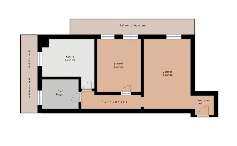 Die angebotene Wohnung befindet sich in zentraler Lage von Meran, in der beliebten Romstraße, nur wenige Gehminuten von der Altstadt entfernt. Cafés, Geschäfte, Schulen und öffentliche Verkehrsmittel liegen in unmittelbarer Nähe. Das historische Zentrum, die Promenaden und die Thermen sind bequem zu Fuß erreichbar – ideal für alle, die urbanes Leben mit hoher Lebensqualität verbinden möchten.