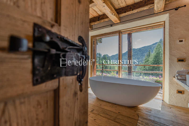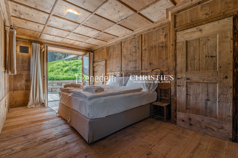 Cesa Dolomiti erstreckt sich über zwei miteinander verbundene Gebäude, das Maso und das Masetto, die beide sorgfältig mit wiederverwendeten Materialien renoviert wurden, um das ursprüngliche Aussehen des Hauses zu erhalten, und die mit modernen technischen Systemen ausgestattet sind, die einen hohen Komfort garantieren. Die großzügigen Innenräume des Chalets bieten Platz für bis zu neunzehn Personen und verteilen sich auf die vier Etagen des ursprünglichen Bauernhauses, wobei jede Etage einen eigenen Zugang von außen hat. Die geräumigen und gemütlichen Zimmer wurden mit antiken Möbeln und Kunstwerken mit viel Liebe zum Detail und Funktionalität eingerichtet, um den Gästen eine einzigartige Erfahrung des Lebens auf einem alten Bauernhof in den Dolomiten zu garantieren. Im Erdgeschoss befindet sich der Wellnessbereich mit Sauna, Dampfbad, Erlebnisdusche, Schwimmbad und Whirlpool, in dem man sich herrlich entspannen kann.