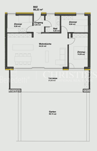 Die Wohnung WB02 besticht durch ihr harmonisches Raumkonzept und großzügige Außenbereiche. Auf einer Nettofläche von 86,23 m² erleben Sie modernes Wohnen mit viel Licht und Komfort.