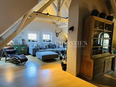 Die Immobilie selbst liegt eingebettet in einem historischen Ansitz aus dem Jahr 1912, der mit seiner schlossartigen Architektur und der Aura vergangener Zeiten beeindruckt. Dieses Gebäude ist ein architektonisches Juwel, das die Geschichte der Region widerspiegelt und gleichzeitig eine moderne Lebenswelt bietet. Die außergewöhnliche Dachgeschosswohnung auf drei Ebenen verbindet das Beste aus beiden Welten: den Charakter und die Grandeur eines historischen Anwesens mit dem Komfort und der Raffinesse einer stilvollen Renovierung.