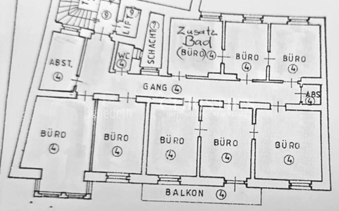Derzeit ist die Fläche in sechs Büroräume unterteilt, die jeweils voneinander abgetrennt, zugleich aber über praktische Durchgangstüren miteinander verbunden sind. Dadurch entsteht eine flexible Raumstruktur, die sowohl konzentriertes Arbeiten in einzelnen Büros als auch eine offene, kommunikative Nutzung erlaubt. Ein repräsentativer Eingangsbereich schafft einen einladenden Empfang für Mitarbeiter, Mandanten oder Kunden.