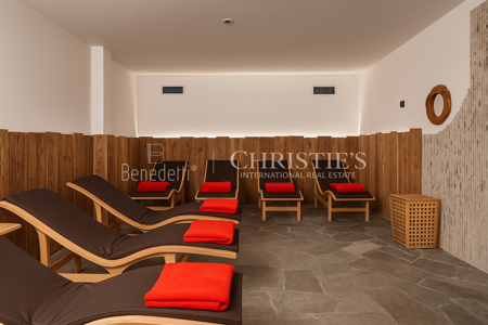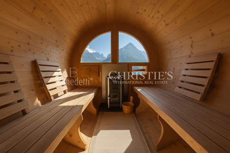Wellness und Komfort stehen ebenfalls im Mittelpunkt: Im Untergeschoss befinden sich eine elegante Wellness-Zone sowie eine Ski- und Ausrüstungsräume, die perfekt auf Wintersportler abgestimmt sind.
