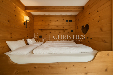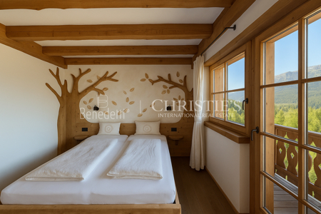 Das Chalet verfügt über sechs exklusive Schlafzimmer, jedes mit eigenem en suite Badezimmer, hochwertig eingerichtet mit Altholz und Zirbenholz für ein gesundes und natürliches Raumklima. Der Master-Bereich im Dachgeschoss beeindruckt mit raumhohen Glasfronten und bietet einen unvergleichlichen Blick in die umliegenden Wälder.