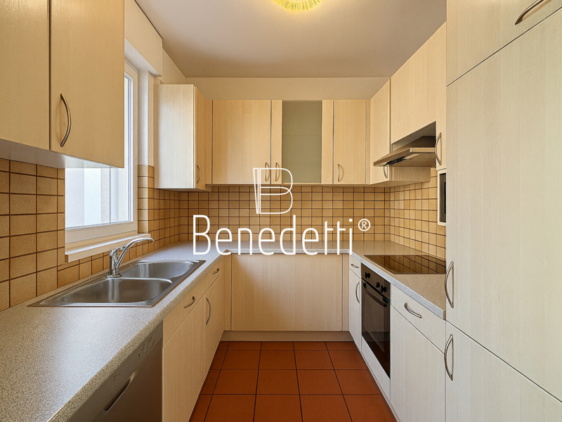 Die Wohnung ist derzeit in 2 Schlafzimmer, ein Esszimmer mit Kochnische sowie ein geräumiges Wohnzimmer unterteilt – und lässt bei Bedarf verschiedene Gestaltungsmöglichkeiten zu. Durch die Süd-West-Nord Ausrichtung sind die Räume den ganzen Tag über angenehm hell und sonnendurchflutet.