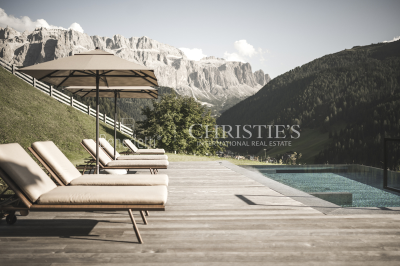 Im Außenbereich bietet das Chalet einen großzügigen Essbereich im Freien sowie einen herrlichen beheizten Pool, der ganzjährig nutzbar ist – perfekt, um die Dolomiten in einer exklusiven Atmosphäre zu bewundern.
