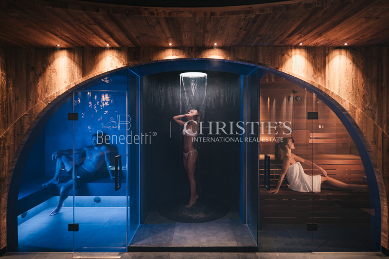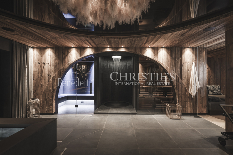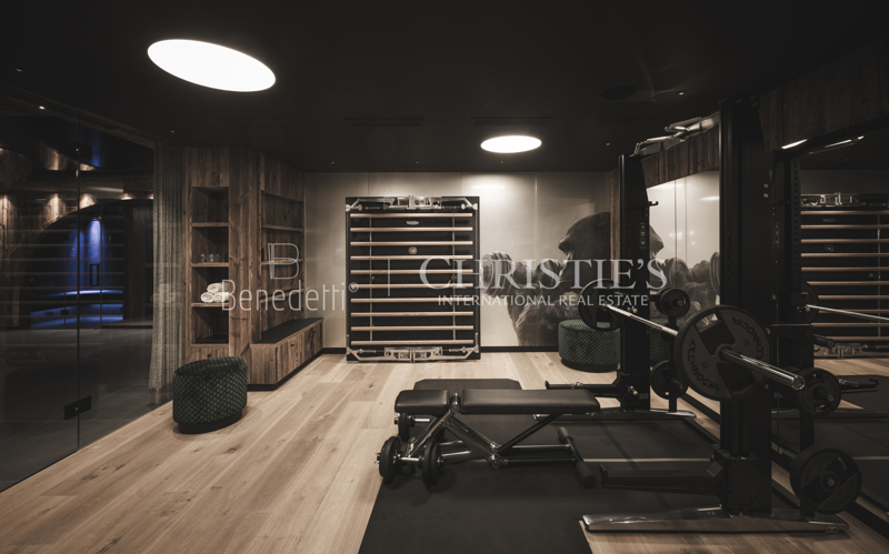 Im Untergeschoss befindet sich der wahre Wellnessbereich des Chalets: ein privater Spa-Bereich für pure Entspannung, ein ausgestatteter Fitnessraum sowie ein praktischer Abstellraum für Ski und Fahrräder – ideal für Liebhaber von Outdoor-Aktivitäten.