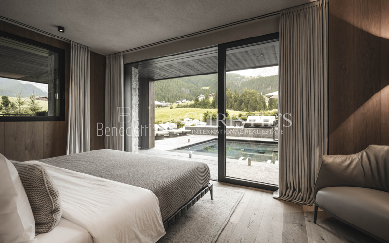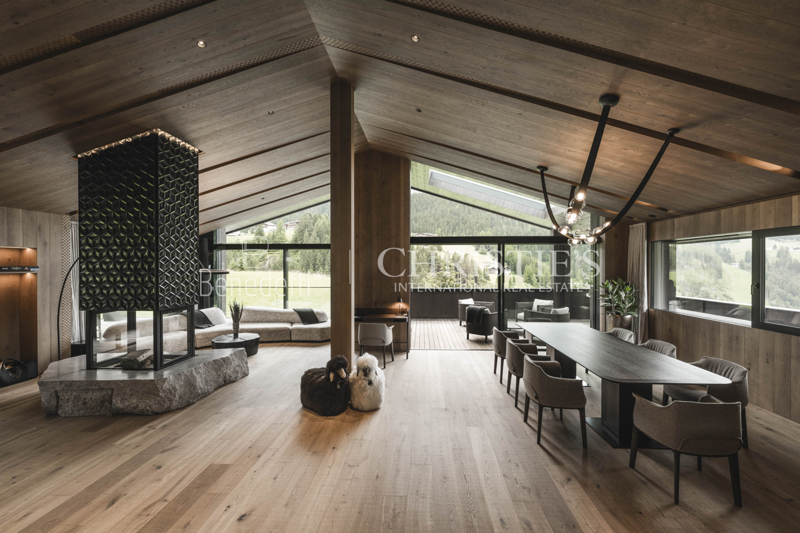 Im Herzen des Grödnertals, eingebettet in eine natürliche Umgebung von absoluter Privatsphäre und außergewöhnlicher Schönheit, verkörpert dieses exklusive Luxus-Chalet die perfekte Balance zwischen zeitgenössischem Design, höchstem Komfort und Materialien von erlesenster Qualität.