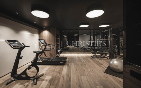 A highlight of the property is the private indoor spa, a true sanctuary of well-being featuring a whirlpool, sauna, steam bath, and sensory shower, complemented by a dedicated massage room. The chalet also offers a fitness room equipped with Technogym machines, as well as a dedicated yoga area.