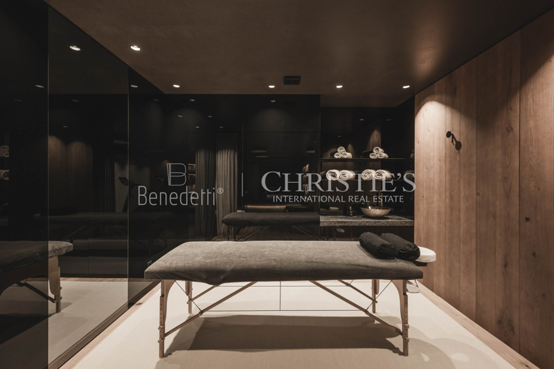 Ein besonderes Highlight der Immobilie ist der private Indoor-Spa-Bereich – eine wahre Oase des Wohlbefindens mit Whirlpool, Sauna, Dampfbad und Erlebnisdusche, ergänzt durch einen eigenen Massageraum. Zudem steht ein Fitnessraum mit Technogym-Geräten sowie ein separater Yoga-Bereich zur Verfügung.