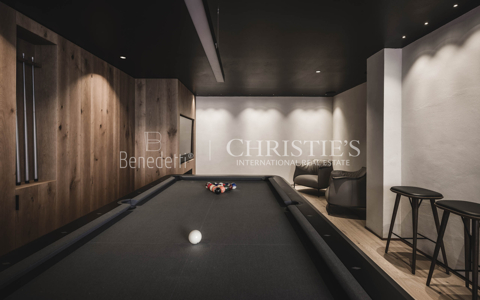 For leisure and entertainment, the chalet provides a refined leisure area with billiards and roulette, in addition to a private bar, perfect for hosting guests in an exclusive atmosphere.
