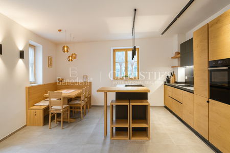 Dieses hochwertige Objekt im vollständig sanierten, historischen Mühlengebäude am Paterbichl kombiniert modernen Wohnkomfort mit dem besonderen Charme eines denkmalgeschützten Ensembles. Das Wohnprojekt wurde erst vor rund einem Jahr abgeschlossen und bietet ein hochwertiges, ruhiges Wohnambiente mit architektonischem Anspruch. Die Wohnung besticht durch helle Räume, klare Linien und eine sorgfältig ausgewählte Ausstattung. Maßgefertigte Tischlermöbel, qualitative Materialien und eine präzise Ausführung verleihen dem Objekt ein elegantes und neuwertiges Erscheinungsbild. Der großzügige Wohnbereich öffnet sich zur weitläufigen Terrasse, die den Wohnraum ideal erweitert und eine angenehme Rückzugsmöglichkeit im Freien bietet. Zwei gut geschnittene Schlafzimmer, ein modernes Badezimmer sowie ein separates Tages-WC sorgen für ein komfortables Wohngefühl. Ein Stellplatz in der neuen Tiefgarage und ein eigener Kellerraum ergänzen das Gesamtangebot. Ein zusätzlicher Vorteil: Die Immobilie ist nicht konventioniert und eignet sich ideal als Ferienwohnung, Zweitwohnsitz oder Investition. Die Kombination aus der ruhigen, hochwertigen Wohnlage am Paterbichl, der wertbeständigen Bauqualität und der modernen Ausstattung macht diese Wohnung zu einer besonders interessanten Option im Raum Kaltern.