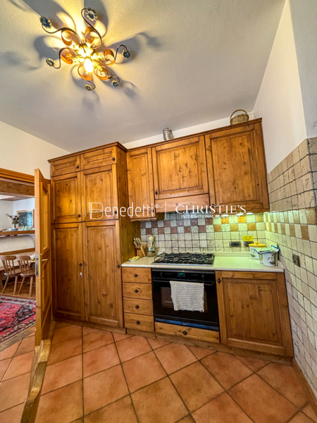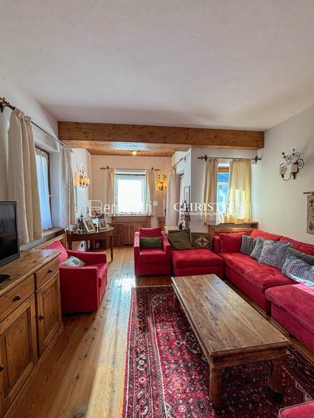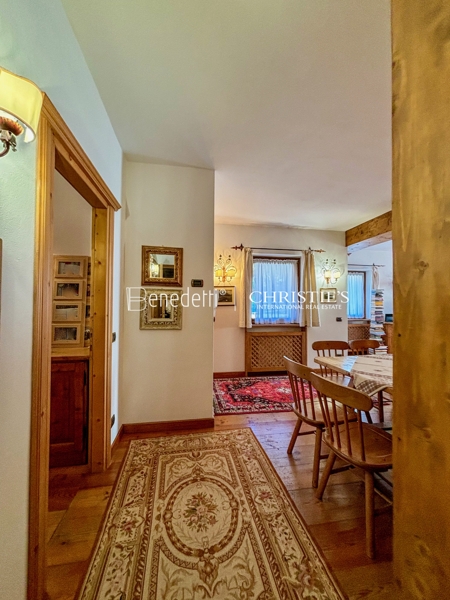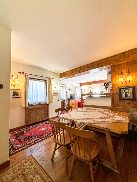 Nur wenige Schritte vom Zentrum von Cortina d'Ampezzo entfernt, in zentraler Lage, bieten wir eine helle Wohnung im ersten Stock zum Verkauf an, die aus einer Eingangshalle besteht, die zu einem großen Wohnzimmer führt, das sich durch einen Ofen im typischen Ampezzaner Stil auszeichnet und eine separate Wohnküche hat.