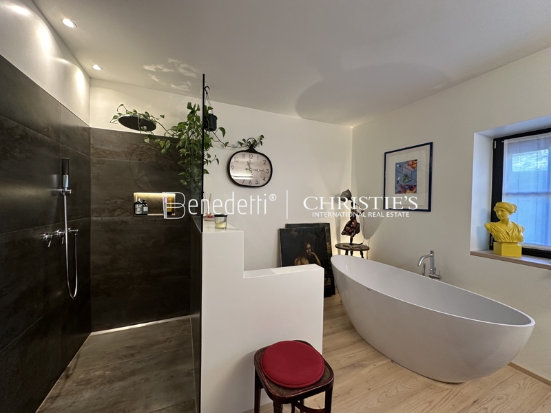 The original residence was built with great attention to detail and local craftsmanship, and it has been extensively modernized in recent years. The spacious living and utility areas are spread across four floors and are ideally suited to the needs of a modern lifestyle. The basement provides ample storage space and includes a large garage equipped with a charging station for electric vehicles – a clear testament to the forward-thinking character of this home.