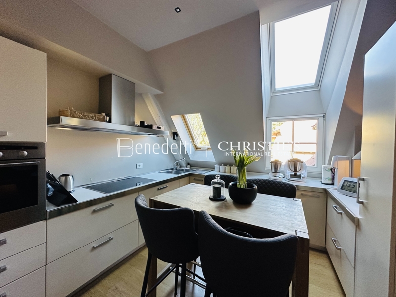 Die Immobilie selbst liegt eingebettet in einem historischen Ansitz aus dem Jahr 1912, der mit seiner schlossartigen Architektur und der Aura vergangener Zeiten beeindruckt. Dieses Gebäude ist ein architektonisches Juwel, das die Geschichte der Region widerspiegelt und gleichzeitig eine moderne Lebenswelt bietet. Die außergewöhnliche Dachgeschosswohnung auf drei Ebenen verbindet das Beste aus beiden Welten: den Charakter und die Grandeur eines historischen Anwesens mit dem Komfort und der Raffinesse einer stilvollen Renovierung.