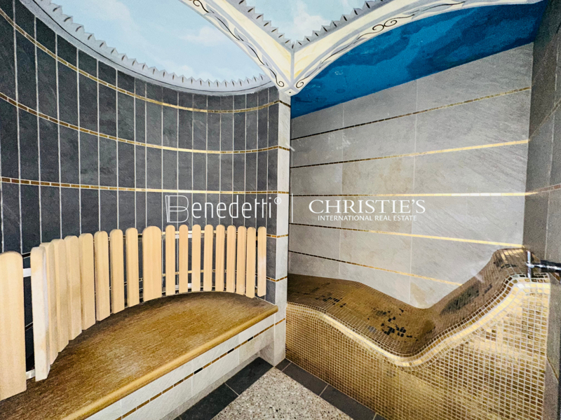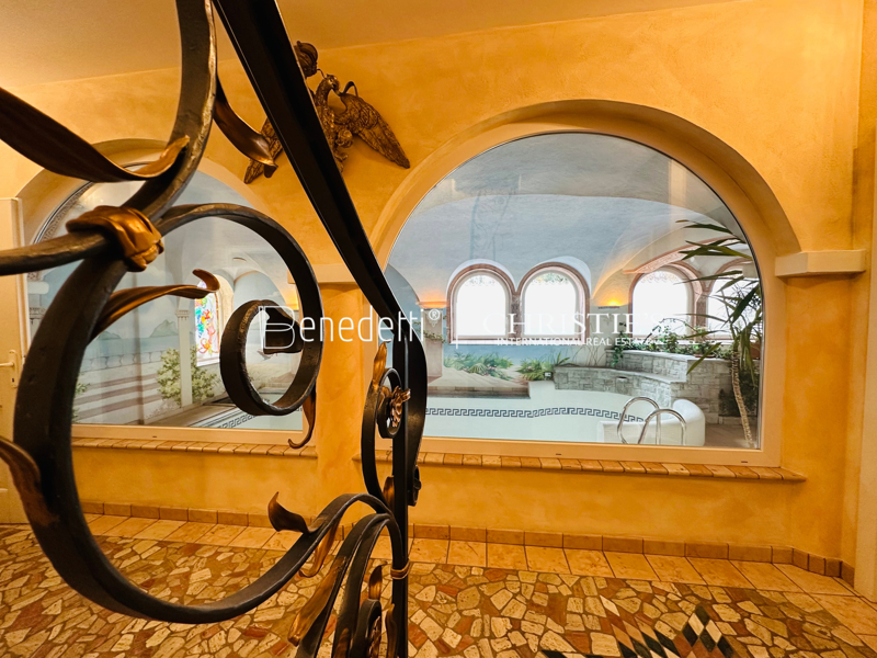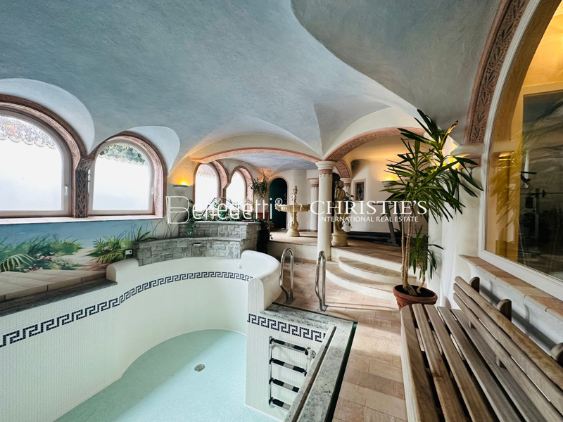 Über eine automatisch öffnende Glastür gelangen Sie in das luxuriöse Spa im Untergeschoss. Der private Wellnessbereich umfasst ein Schwimmbad mit einer Länge von über 5 Metern, eine finnische Sauna, ein Dampfbad sowie eine Dusche und ein separates WC. Der Fitnessbereich ist derzeit so ausgestattet, wie er ist, kann aber auch problemlos zu einem gemütlichen Rückzugsort umgestaltet werden. Ein zusätzlicher Raum im Untergeschoss bietet weiteren Platz für kreative Arbeiten, Weinkeller oder als ruhigen Ort zum Entspannen - je nach Gestaltungsvorliebe.