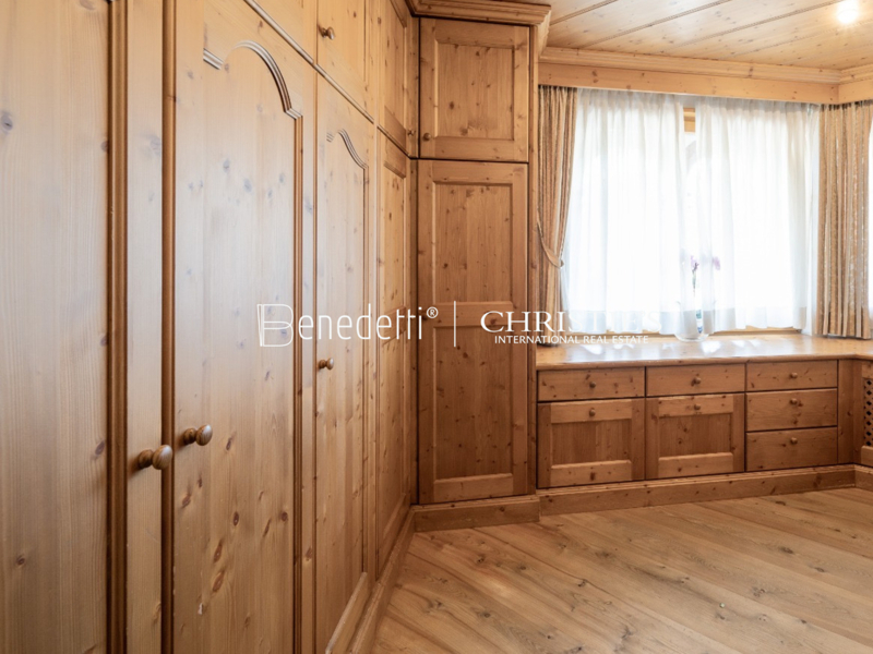 Al piano superiore si trovano tre spaziose camere da letto, ognuna con il proprio bagno privato per garantire il massimo del comfort. La camera padronale è un vero gioiello, dotata di un elegante cabina armadio e di un balcone privato dal quale si gode una vista mozzafiato sulle montagne circostanti. L'esposizione a sud del balcone assicura inoltre un’illuminazione solare per tutto il giorno. Una scala retrattile automatica conduce alla mansarda, offrendo un ulteriore spazio notte flessibile e funzionale.